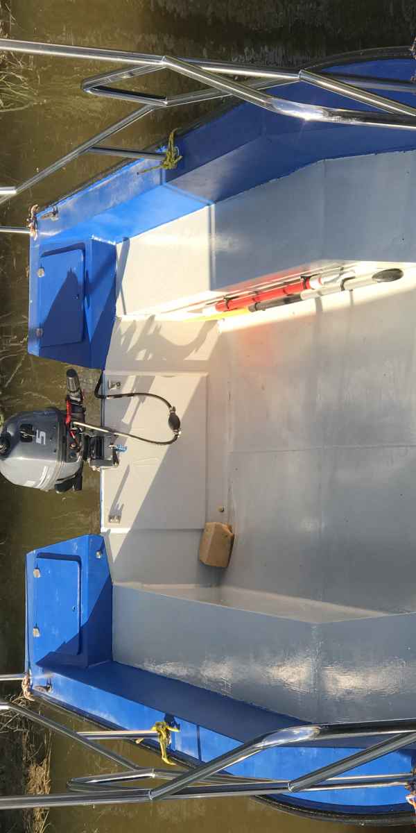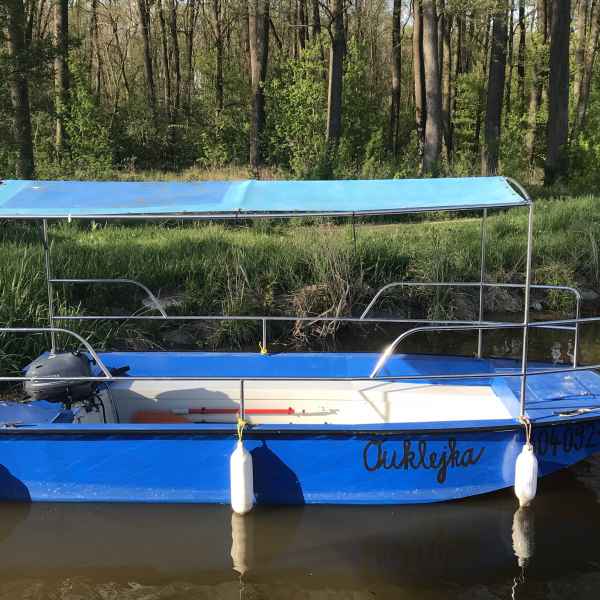 motorový člun s maximální obsaditelností 12 osob, řízení kormidelním kolem, prostorný, stabilní, velmi dobře ovladatelný s uzamykatelnými úložnými prostory, vhodný pro delší plavby.