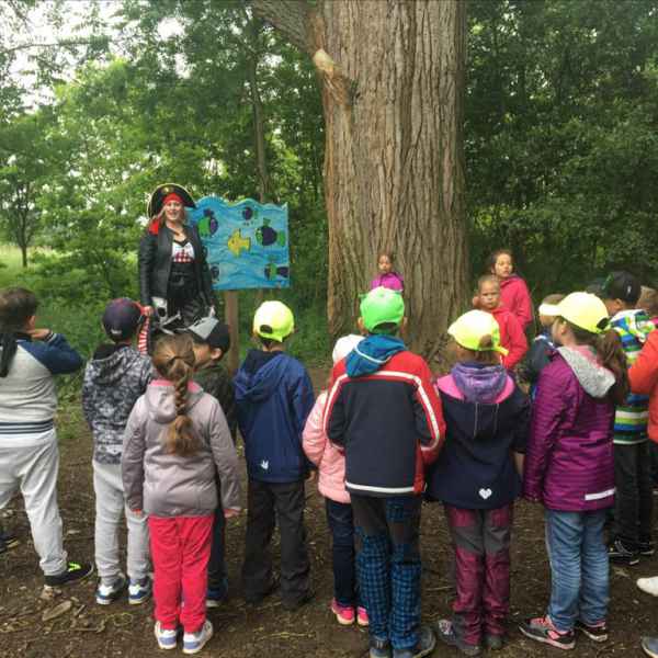 Po doplutí na základnu si namalujeme pirátské šátky (černé bavlněné trojcípé šátky, razítka, bílá barva ). Zatímco bude barva zasychat, vyrazí děti plnit pirátské úkoly. Budou-li úspěšní, dostanou mapu k pokladu. Je možné si udělat ohýnek, opéct buřty, zahrát míčové hry. Na konec plavba lodí zpět.